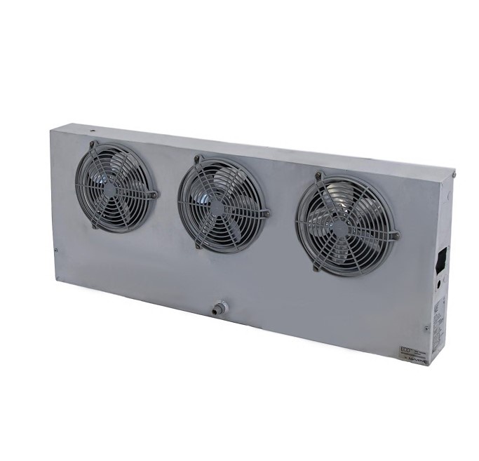 Наклонный воздухоохладитель Eсо EVS 291 ED используется для охлаждения и поддержания заданного температурного режима в холодильных камерах. Оснащен тремя вентиляторами диаметром 200 мм. Оттайка электрическая, мощность 1,08 кВт. Длина струи – 4 метра. В конструкции теплообменника используются медные трубки с внутренним оребрением и змеевиками нового образца.