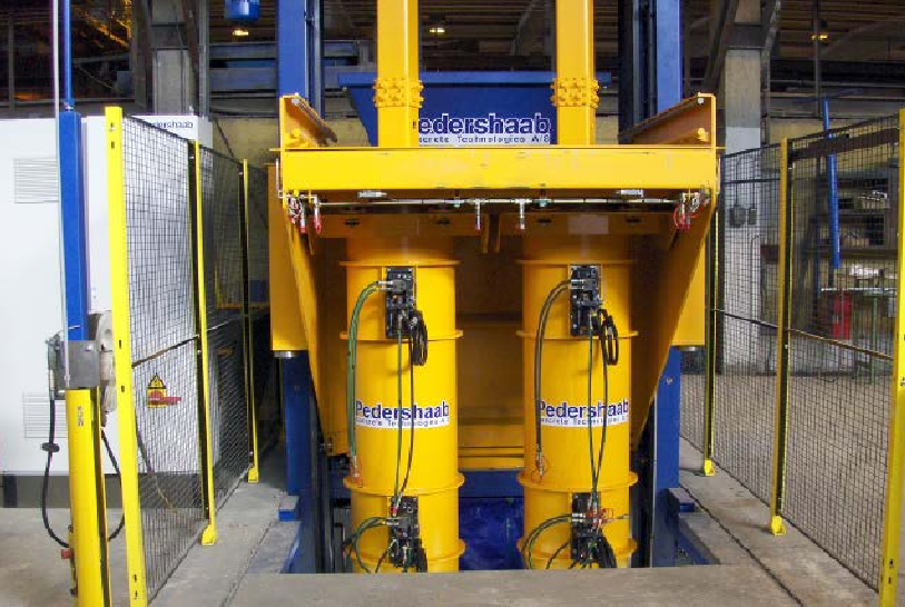 После завершения процессов заполнения, уплотнения и формовки патрубков машина автоматически распалубливает изделие и поднимает его на уровень пола, чтобы его можно было выгрузить с помощью тележки для продукции или вилочного погрузчика.