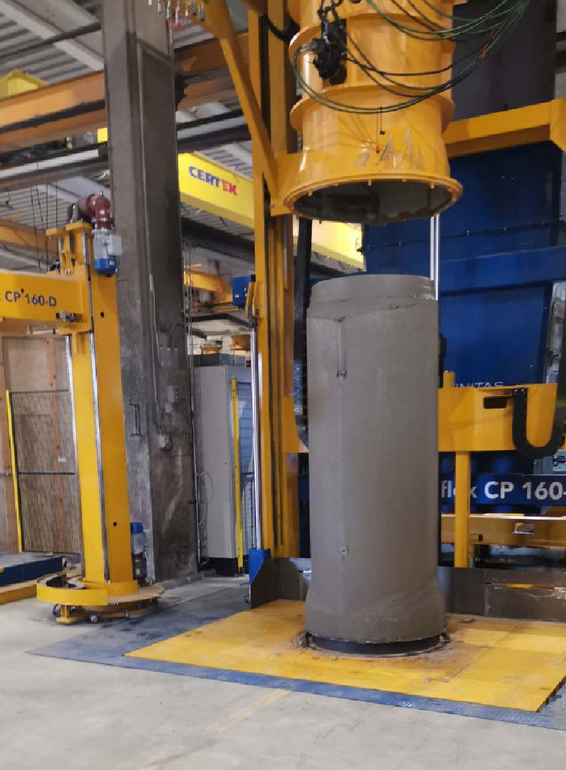В зависимости от размеров изготавливаемых изделий, машины VIHY Masterflex могут выполнять до 20 циклов в час и способны производить до 50 000 тонн бетонных труб в год при односменной работе.