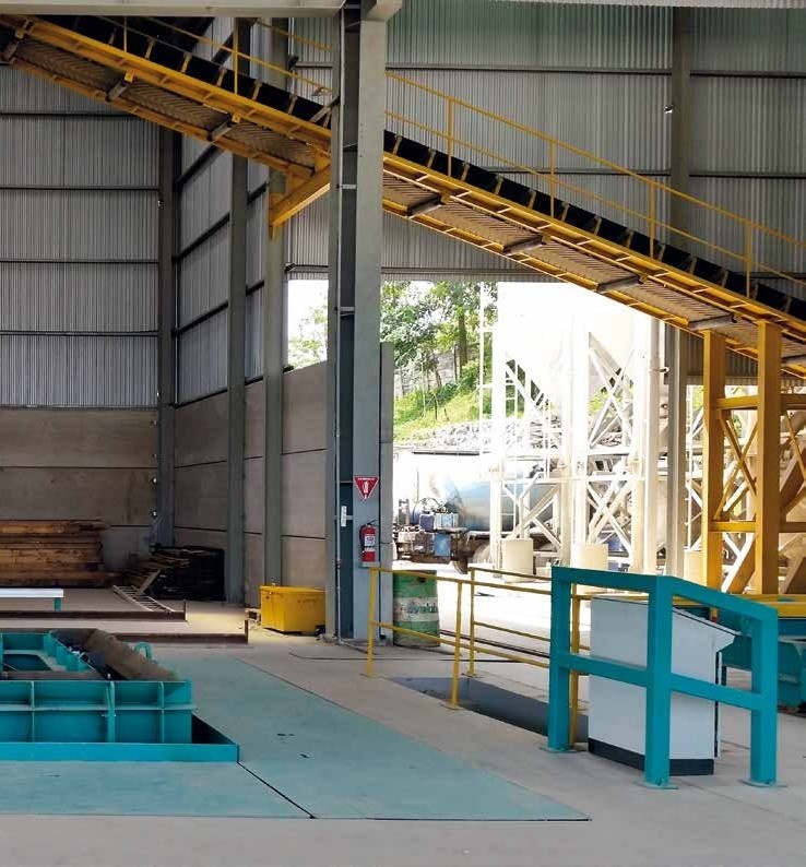 Бункер бетонораздатчика заполняется с помощью ленточного конвейера или передвижного ковша.