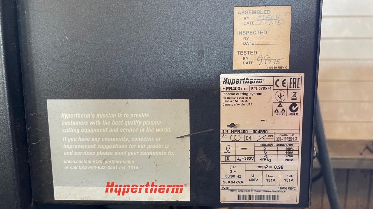 Продаю Машину термической ррезки мТР плазменная резка Hypertherm HyPerformance HPR 400 XD. г/в 2015. малая эксплуатация. 6000х2000