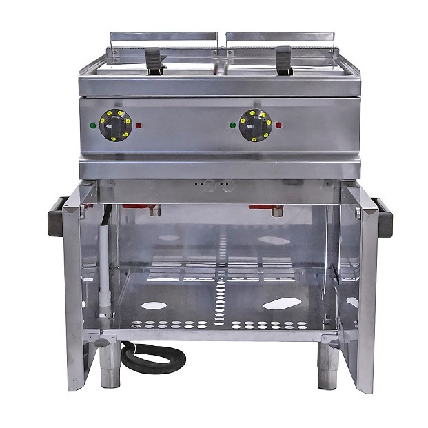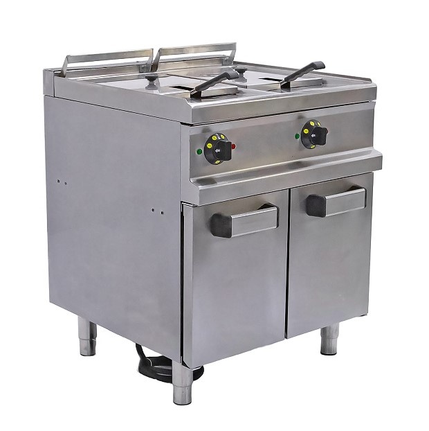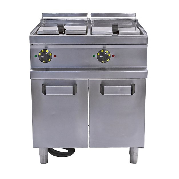 Фритюрница Apach APFE-77P предназначена для приготовления блюд в масле на предприятиях общественного питания и торговли. Модель оснащена электромеханической панелью управления и закрытой подставкой с регулируемыми по высоте ножками. Во фритюрнице предусмотрена холодная зона, что позволяет увеличить время использования масла. Корпус, ванны, рабочая поверхность, боковые и задняя панели ,панель управления и вытяжная решетка выполнены из нержавеющей стали,корзины - из хромированной стальной проволоки.