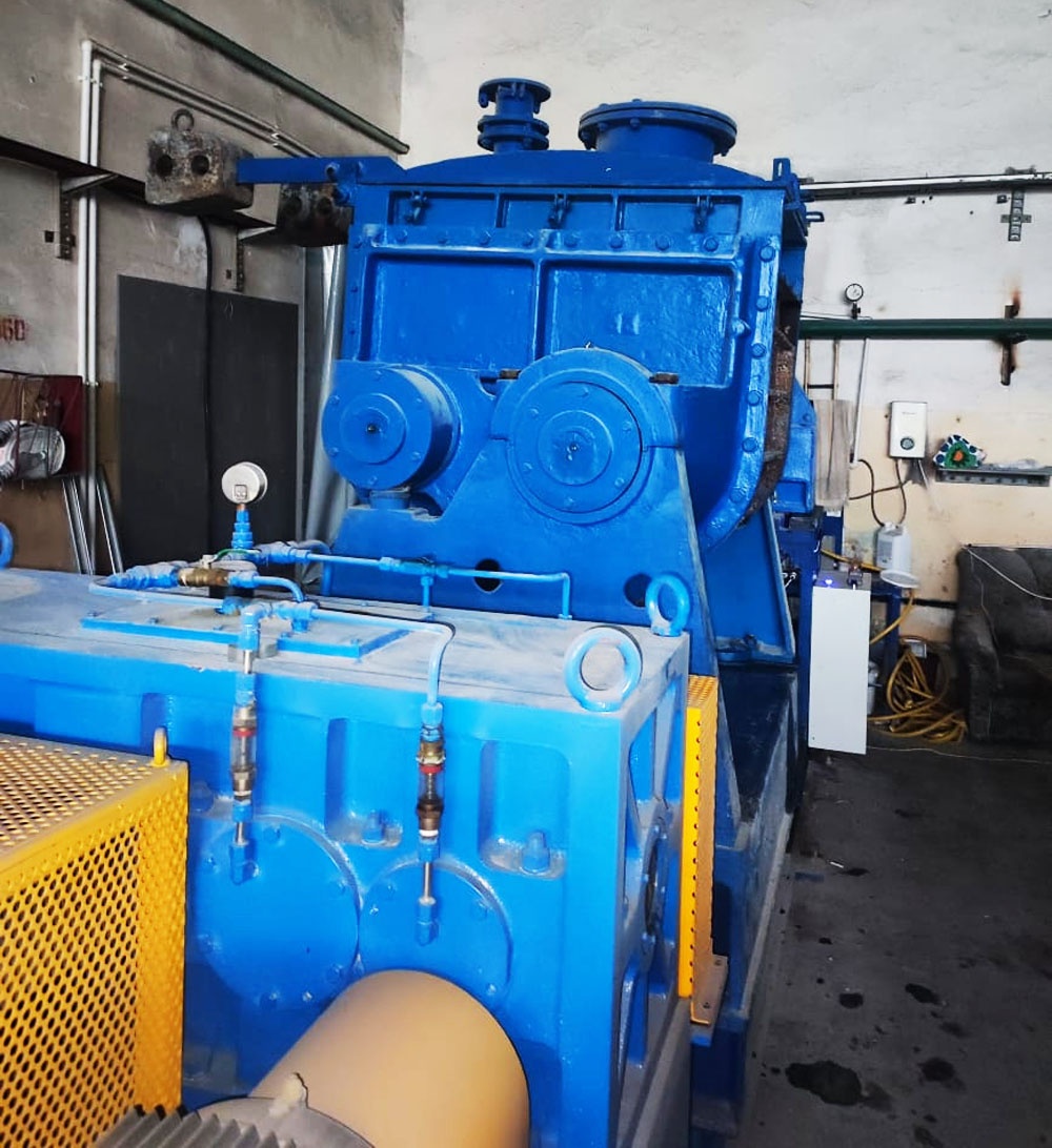 Рабочий орган: два горизонтально расположенных Z-образных лопастных валка, вращающихся в противоположные стороны, с различными скоростями, вращение валков - реверсивное.
