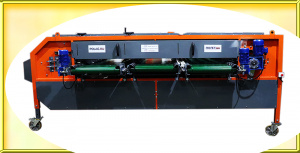 Далее, щеточный вал, с целью, очищения роликов, от накопившейся земли. Помимо того, каркас, роликовой калибровочной машины, исполнен, из толстостенной профильной трубы. Точно так же, усилен ребрами жесткости. Кроме того, очень быстрая, регулировка зазоров, между калибровочными валами.