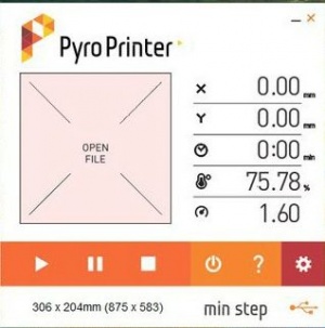 Новая версия программы Pyroprinter дает точное бесперебойное микроперемещение, позволяет работать с OS Windows XP, 7, 8, 10 и подключать ЧПУ даже к ноутбуку через USB порт и самое главное увеличена скорость работы.