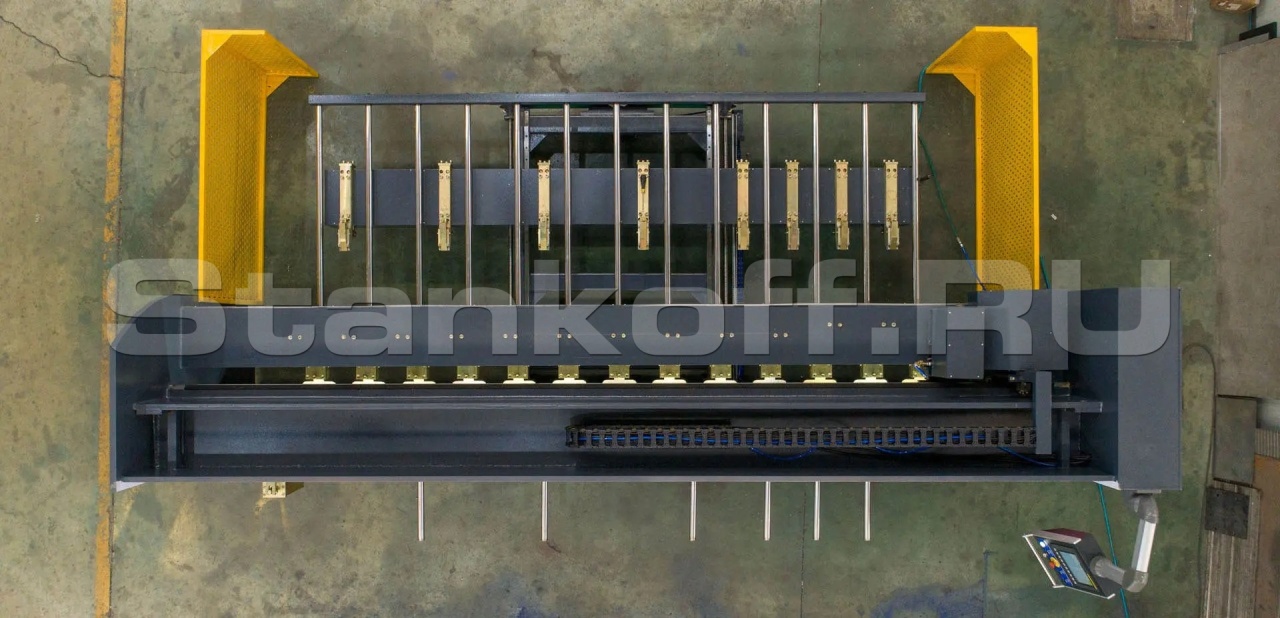 Повышает удобство работы с заготовками, выполнен в виде стола, который крепится к задней части листогибочного станка.