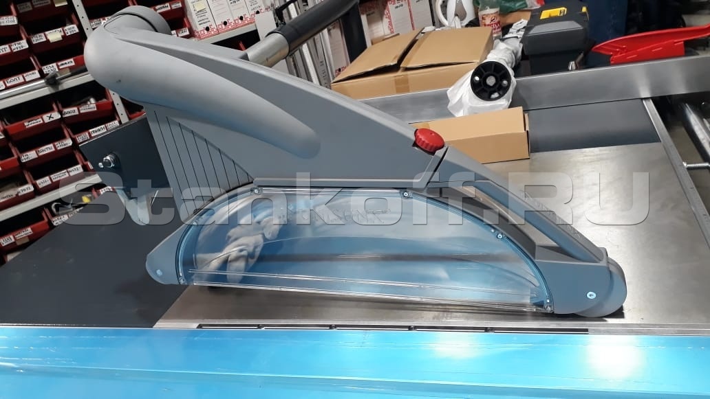 В стандартную комплектацию станка входит угловой упор для раскроя заготовок, который устанавливается на каретку и настраивается по специальной шкале.