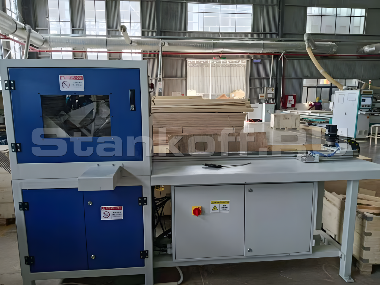 - Длина подающего стола: 2 м, позволяет обрабатывать деревянные заготовки до 1500 мм.