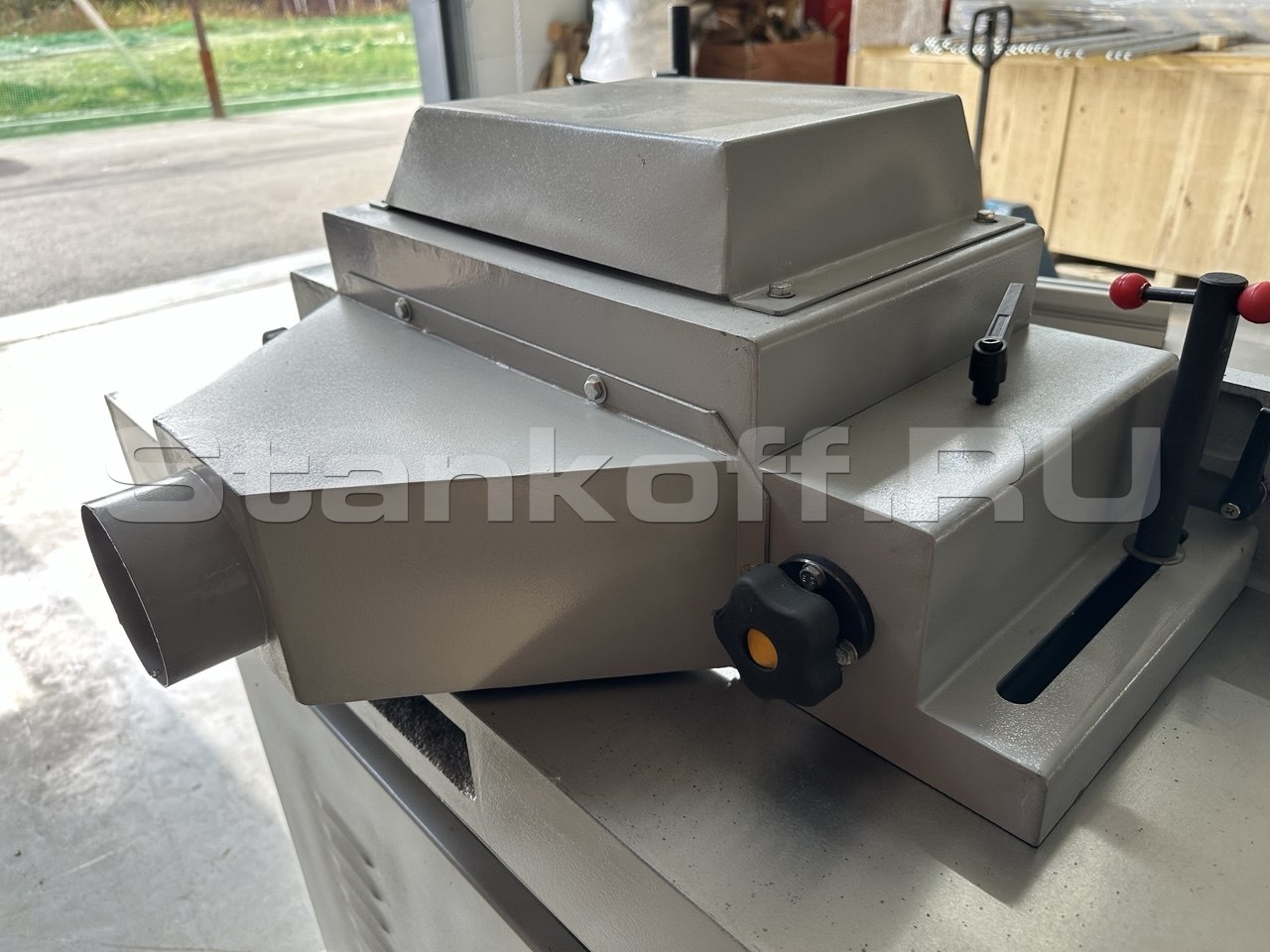 Чугунный кожух с патрубком для подключения аспирации и системой регулировки толщины фрезерования.