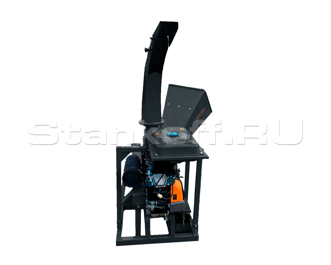 Предназначен для переработки различных древесных отходов, таких как хворост, древесная кора, ветки и другая растительная биомасса. Измельчитель веток способен перерабатывать материалы диаметром до 100 мм. Мощный двигатель обеспечивает высокую производительность. Ёмкость топливного бака составляет 17 литров, что позволяет работать длительное время без необходимости частой дозаправки.
