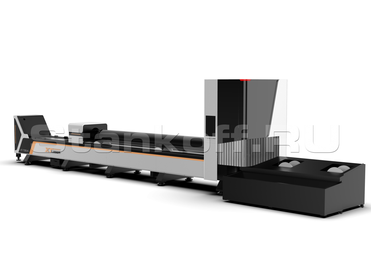 Современный станок для резки труб из нержавеющей, углеродистой, марганцевой стали, латуни, алюминия и т.д круглой, квадратной, эллиптической, шестигранной формы, D-образных труб, с оптоволоконным лазерным излучателем и электронной системой управления ЧПУ. Может обрабатывать трубы различных диаметров и длин. Широко используется в различных отраслях промышленности.