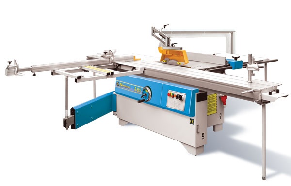 Длинная алюминиевая каретка (пр-ва Германии) на закалённых стальных направляющих и широкий поперечный стол позволяют устанавливать и перемещать относительно пильного механизма листы большого формата. Пильный механизм включает в себя два режущих узла: основную пилу и подрезную пилу. Подрезная пила имеет попутное вращение относительно подачи заготовки и за счёт предварительного реза позволяет раскраивать ламинированные листы ДСП без появления сколов.