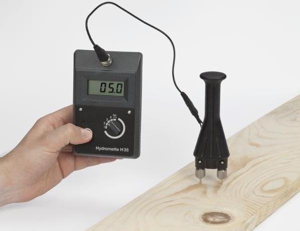 Принцип работы – преобразование электрического сопротивления древесины в проценты влажности.
