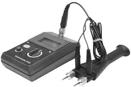Для работы влагомера GANN H 35 необходимы кабель и выносная рукоятка, которая ограждает прибор от давления на него при внедрении игл в древесину. Пластмассовая рукоятка комплектуется иглами длиной 16 и 23 мм.