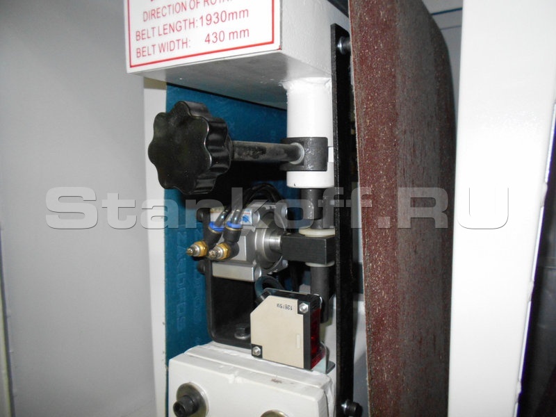 - Станок оснащен фотоэлементами контролирующими положение шлифовальной ленты относительно центра.