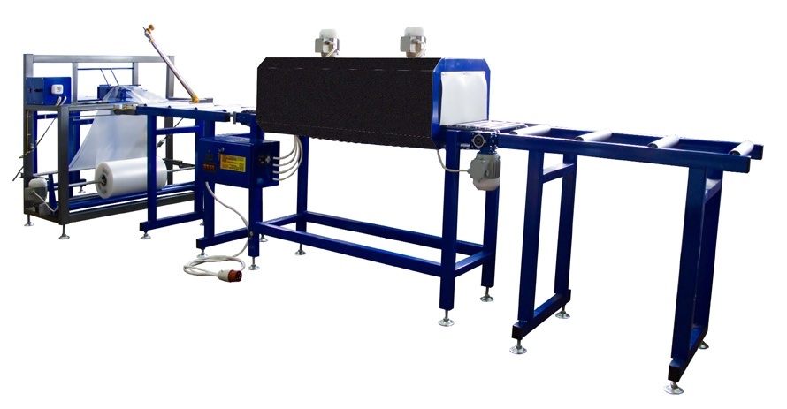 - Односекционного проходного термотоннеля с 2-мя зонами внутреннего нагрева; дополнительный фен на выходе из термотоннеля для финального формирования продольно шва;