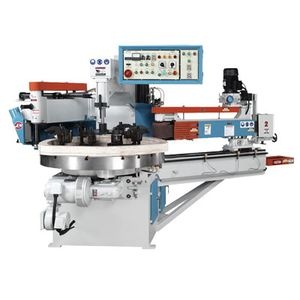Ножки стульев, спинки стульев и т.п. – для продольного фрезерования таких заготовок по периметру стола крепятся шаблоны, на шаблоны укладываются заготовки и фиксируются специальными пневмоприжимами расположенными так же по периметру стола. Стол вращается, за 1 оборот обрабатывается несколько заготовок (в зависимости от их размера). Во время данной операции стол не останавливается, оператор успевает снять обработанное изделие и установить на его место новую заготовку, т.к. прижим заготовок осуществляется автоматически – это позволяет добиться высокой производительности.