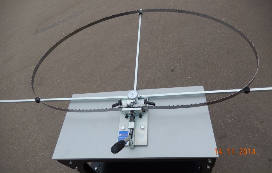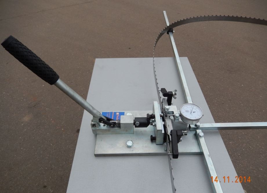 В комплект разводных станков для ленточных пил входят направляющие для поддержки пилы во время разводки.