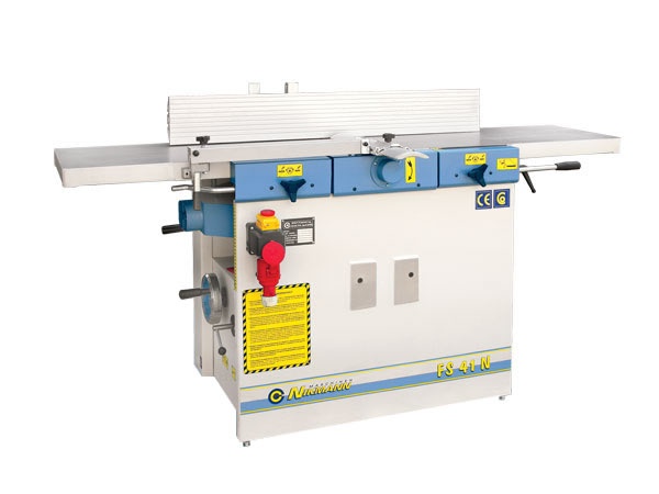 На станке установлен четырехножевой вал с высокой частотой вращения, а также электродинамическая остановка режущего вала. Возможность подъема-опускания столов станка и надежная их фиксация позволяет снимать нужный слой материала качественно и равномерно по всей длине заготовки. Направляющая рейсшина перемещается в зависимости от ширины строгаемого материала и может быть установлена на нужный угол в вертикальной плоскости до 45º.
