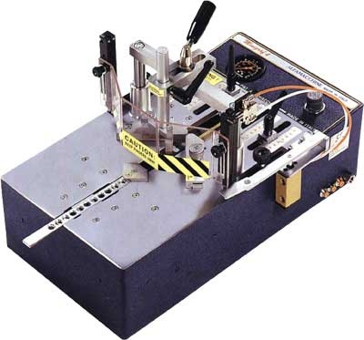 Предназначен как для серийного, так и для штучного производства рам в условиях мастерской. Снабжен устройством подачи V-образных скоб, укрепленным на подвижной каретке, которой с помощью пневматического механизма управляет оператор. Производятся две модификации этой модели: двух- и трехпозиционная. Двухпозиционная модель позволяет подавать V-образные скобы в две различные позиции; трехпозиционная – в три различные позиции.