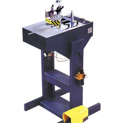 Станок предназначен для скрепления деталей рам, среднего и крупного размеров при работе в мастерской, когда необходима частая и быстрая смена рабочего размера в условиях небольшого рабочего пространства. Станок оборудован напольной стойкой, с помощью которой можно менять расположение рабочей поверхности – горизонтально или под углом, это позволяет оператору работать с передней или с задней его стороны. Снабжен устройством подачи V-образных скоб, укрепленным на подвижной каретке, которой вручную управляет оператор, и которая легко перезаряжается даже при работе в наклонном положении с багетом любого профиля, это позволяет быстро подать V-образные скобы в нужную позицию.