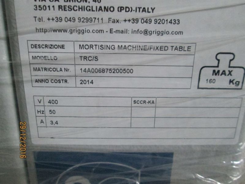 Уменьшенным вариантом сверлильно-пазовального станка GRIGGIO, предназначенного для выборки пазов и сверления отверстий в изделиях из древесины, что так часто требуется в мебельном, столярном, формовочном, плотницком производствах, является сверлильно-пазовальный станок с фиксированным столом и подвижной головкой TRC/S.