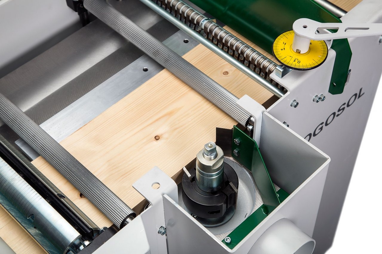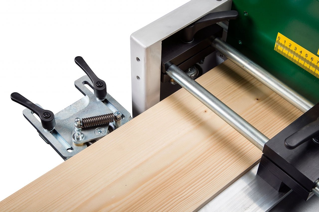 Двусторонний строгальный станок Logosol DH410 имеет много общего со станком PH260. Станок основан на тех же принципах, и большинство его компонентов идентичны PH260, т.е. это очень устойчивый станок с чугунным рабочим столом и отдельными двигателями для каждой фрезы и подачи. Оба станка также имеют одинаковые ножи и режущие головки.