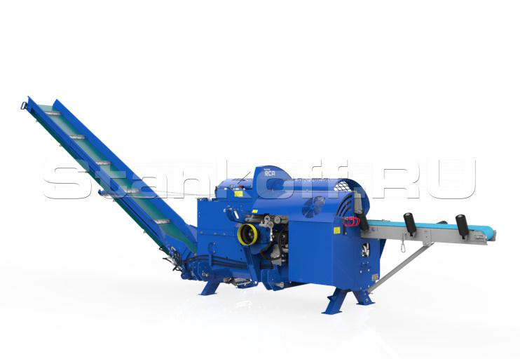 Подающий конвейер длиной 2,0 метра позволяет надежно базировать бревна на транспортерной ленте. Гидропривод конвейера обеспечивает плавную подачу бревен в зону обработки.