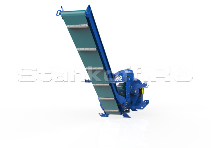 Транспортер для отвода дров имеет длину 4 метра и настраивается на необходимый угол наклона за счет лебедки. Также регулируется поворот влево/вправо +/- 15 Скорость движения транспортера регулируется бесступенчато. Натяжение ленты гидравлическое.