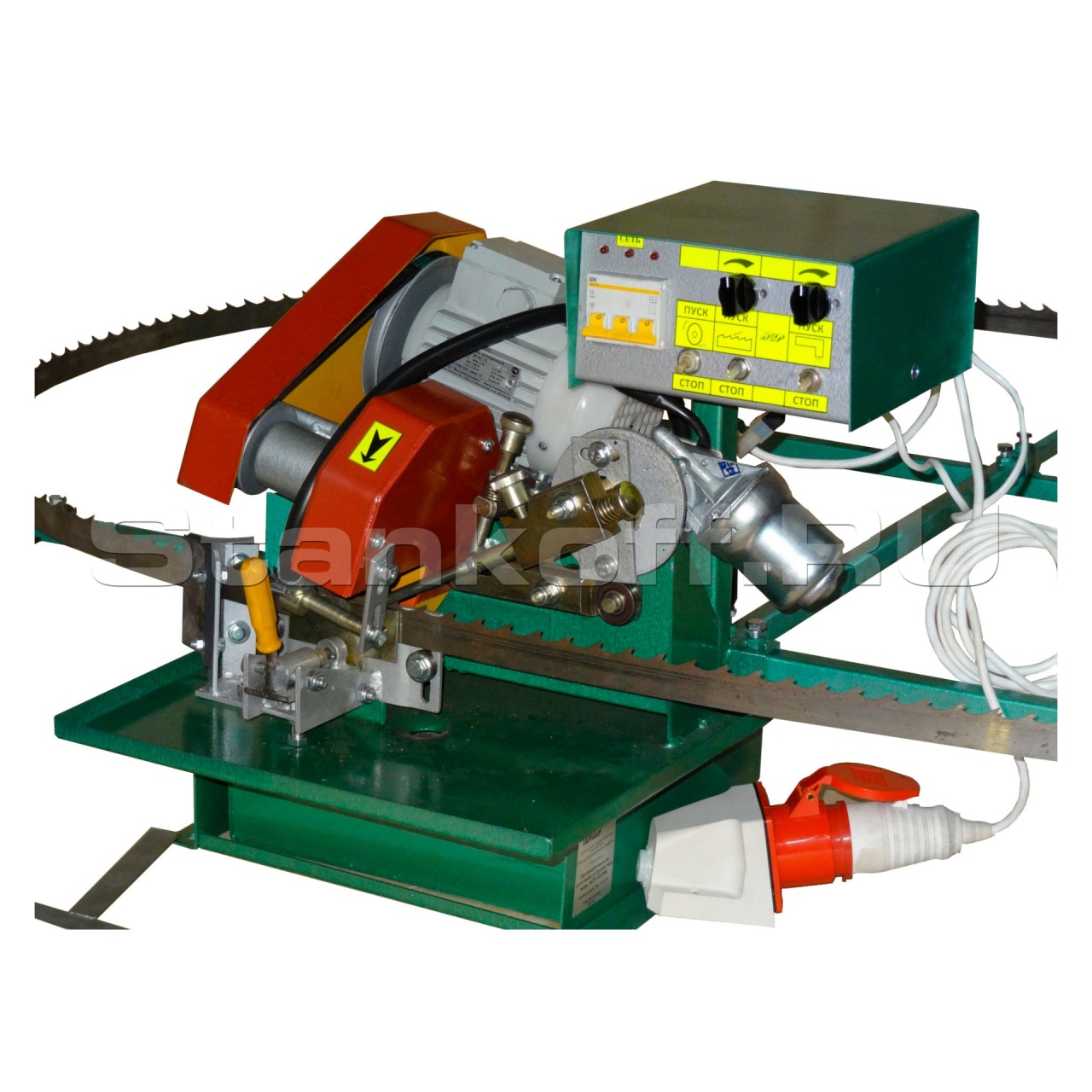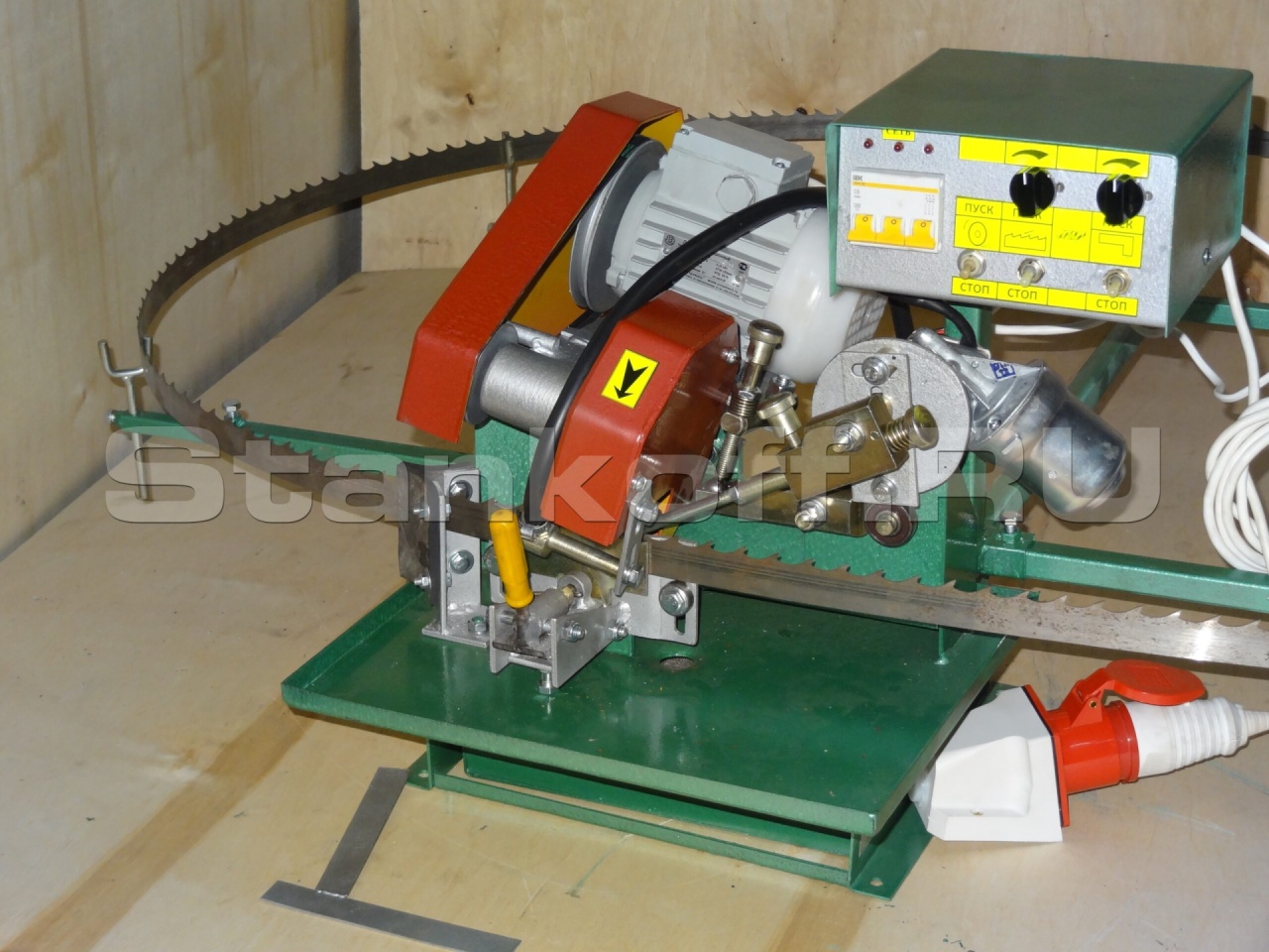 Заточной станок для ленточных пил АЗУ-02.9 предназначен для заточки ленточных пил. Для подачи СОЖ в конструкции предусмотрен центробежный насос. В качестве СОЖ использовать, например, масло "Индустриальное 12" или "20" с добавлением солярки для уменьшения вязкости, т.к. центробежный насос не рассчитан на применение вязких жидкостей. Для достижения более качественной заточки с применением эльборового (боразонового) круга конструкция станка обеспечивает частоту вращения быстроходного вала с кругом - 5200 об/мин, при этом в конструкции применены импортные подшипники высокого качества.