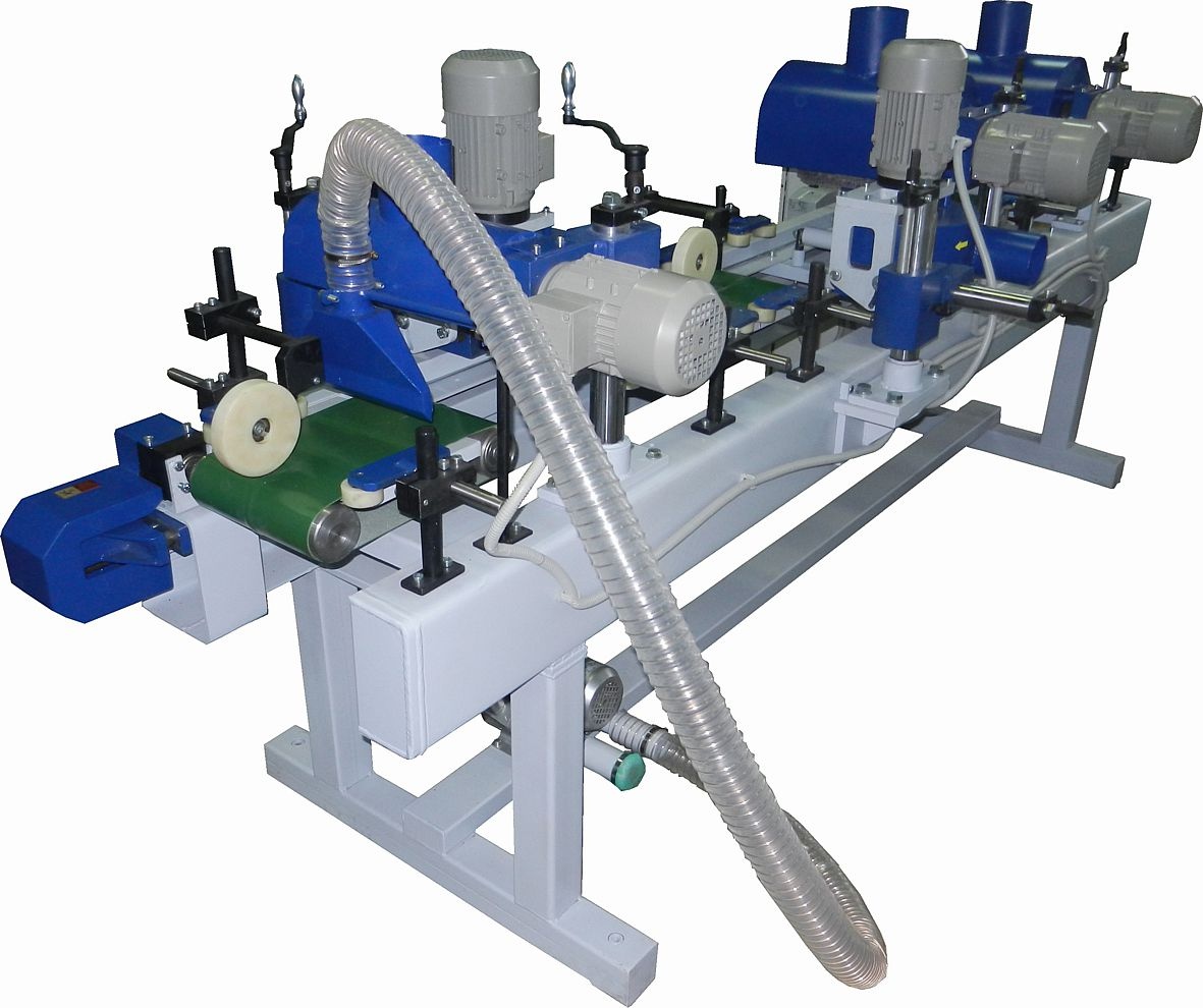 Предназначен для трехстороннего шлифования погонажных изделий различного профиля перед покраской, а также для снятия ворса, который образуется после нанесения на изделия лакокрасочного материала.
