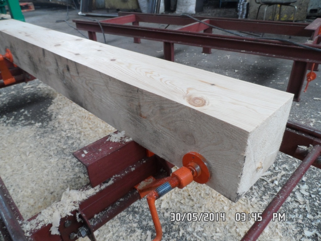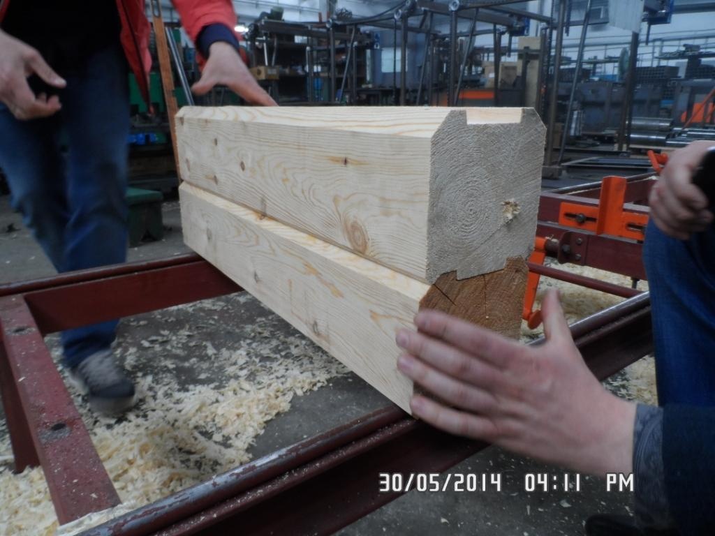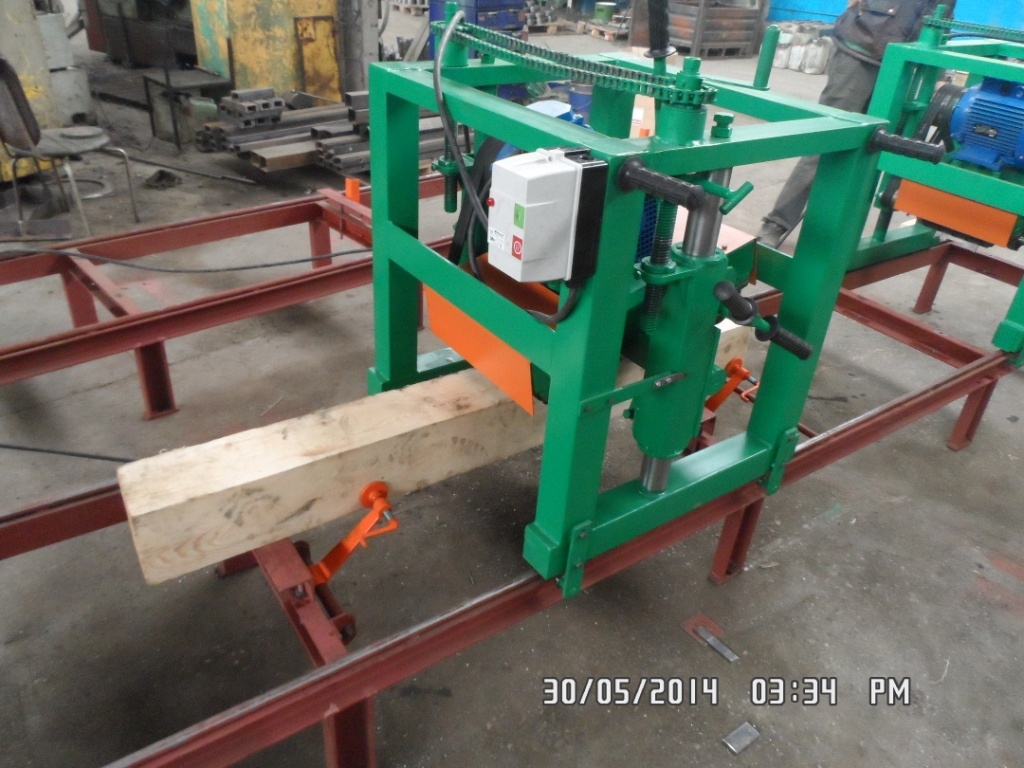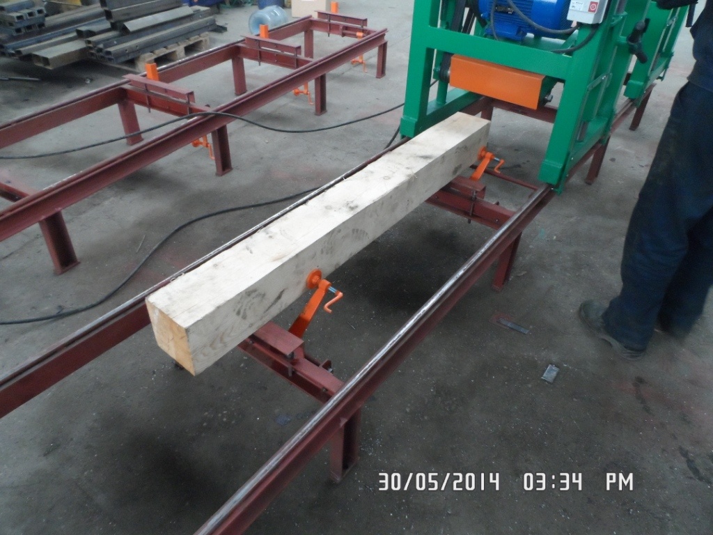 После того как кругляк распускается на поворотных дисковых пилорамах, Вы получаете доски и брус с высоким качеством геометрии. Далее полученный брус крепится при помощи специальных зажимов вручную расположенные на направляющих СБП-200. Сначала производится строгание двух поверхностей параллельно расположенных относительно друг друга, а затем производится профилирование.
