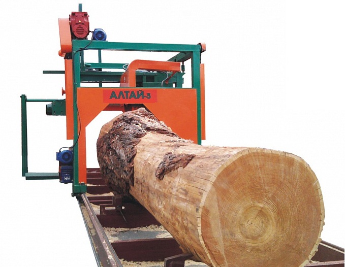 После установки пиловочника на направляющие, первым проходом снимается лыска, после чего бревно распиливается на обрезной пиломатериал (доски, брус).