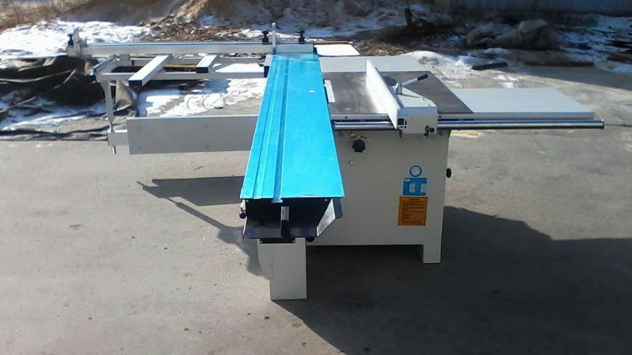 Длинная алюминиевая каретка и широкий поперечный стол позволяют устанавливать и перемещать относительно пильного механизма листы большого формата. Пильный механизм включает в себя два режущих узла основную пилу и подрезную пилу. Подрезная пила имеет попутное вращения относительно подачи заготовки и за счет предварительного реза позволяет раскраивать ламинированные листы ДСП без появления сколов.