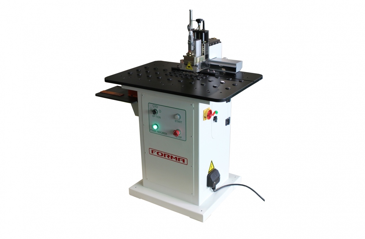 Предназначен для фрезерования свесов кромки по пласти после приклеивания, а также чистовой торцовки свесов по длине заготовки. Станок позволяет одновременно фрезеровать верхний и нижний свесы кромки по пласти и осуществлять чистовую торцовку свесов по длине. Обработка осуществляется как прямолинейных так и криволинейных деталей.