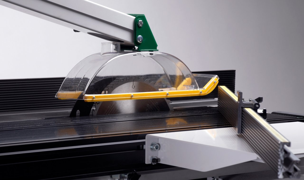 В зависимости от габаритов обрабатываемой заготовки и задач ее обработки, пильный диск может перемещаться по вертикали и наклоняться на угол до 45 градусов. Позиционирование обрабатывающего инструмента, который передвигается параллельно стальному брусу, осуществляется при помощи направляющей, способной осуществлять высокоточную настройку ширины хода пильного диска с точностью до 0,1 мм. Направляющая пильного диска может быть расположена как горизонтально, так и вертикально: ее положение зависит от высоты материала для обработки. Угловые регулируемые направляющие, позволяющие осуществлять угловой распил заготовок, могут быть расположены с двух противоположных сторон рабочей поверхности станка.