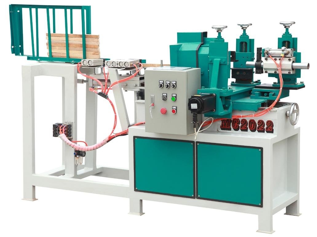 Предназначен для серийного изготовления деревянных профильных изделий небольшого размера, с возможностью сверления отверстия в торце, из заготовок круглого сечения различной длины.