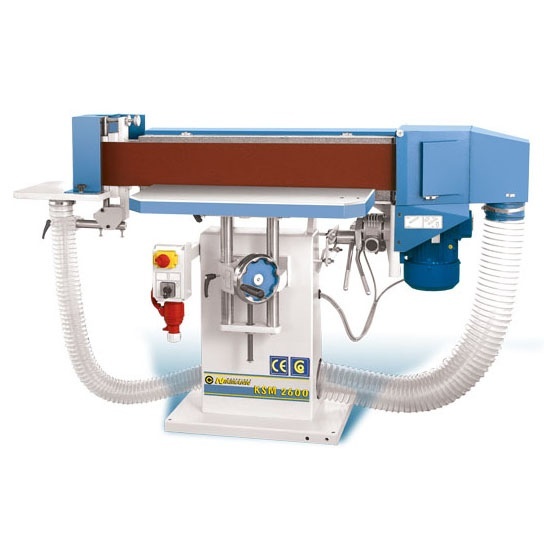Станок мод. KSM 2600 предназначен для шлифования по кромке шириной до 150мм изделий из ДСП, ДВП, массива и сложных деталей мебели. Конструкция корпуса станка исключительно стабильная, не поддается вибрации и деформации. Наклон шлифовального узла дает возможность удобно шлифовать кромку с наклоном 90º-45º. С помощью отдельного привода шлифовальная лента перемещается вертикально с системой осциллирования, что способствует продлению срока её использования. Для шлифования вогнутых изделий предусмотрен специальный узел.