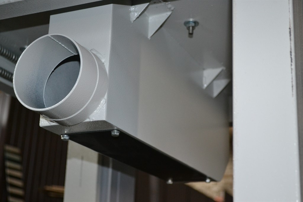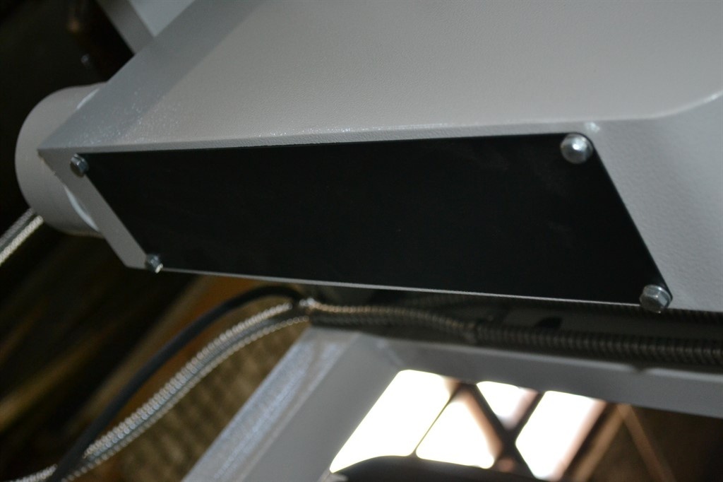 Для удаления опила Вы можете подключить станок к аспирационной системе посредством патрубка. Или же, сняв люк с нижнего ограждения, использовать механическое удаление опила.