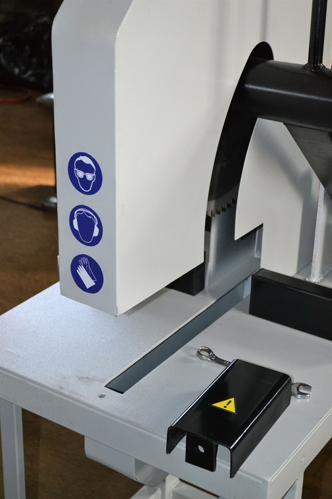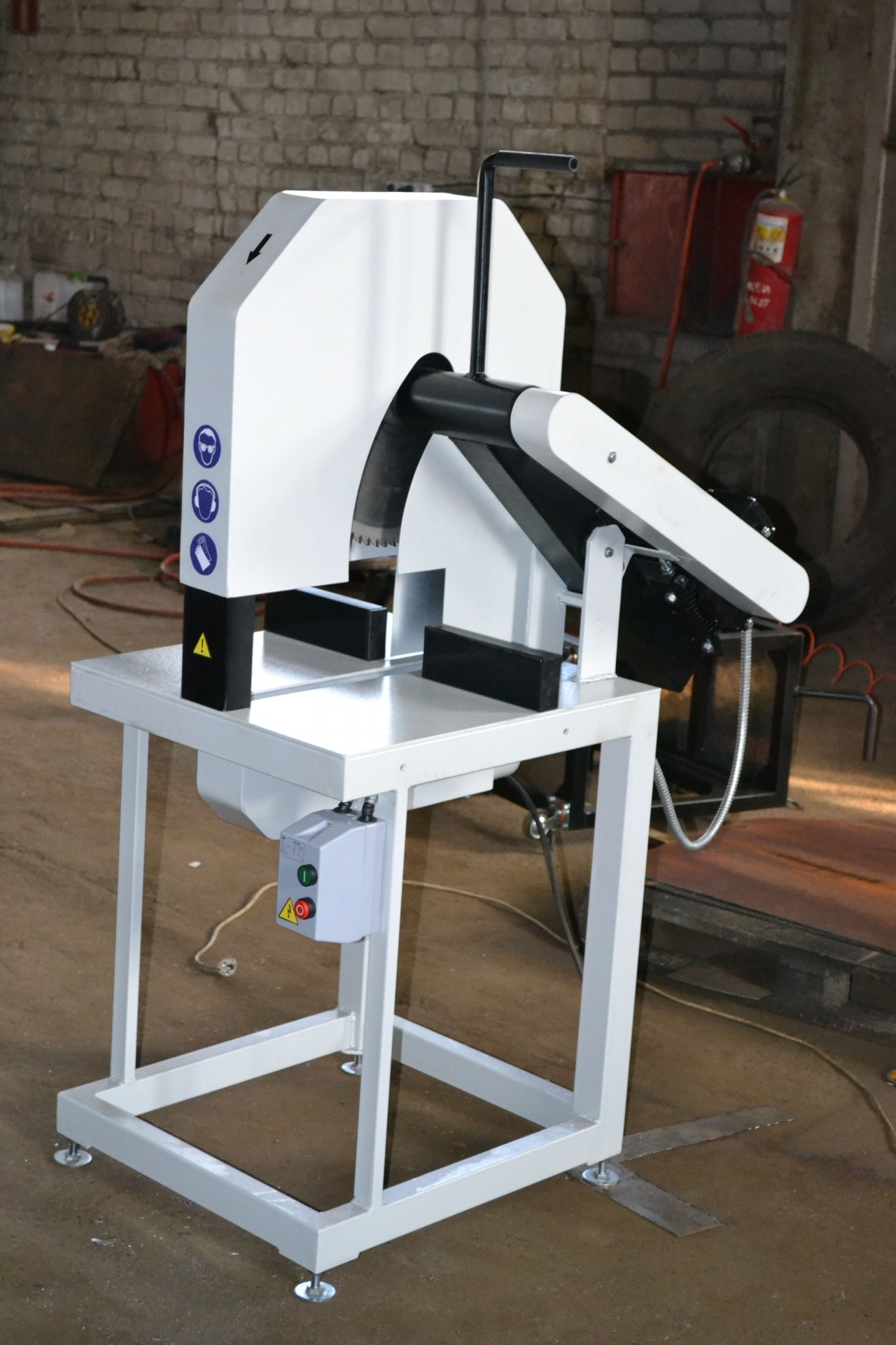 Маятниковой механизм станка сбалансирован таким образом, что подача пилы в зону резания производится лёгким нажатием руки, а возврат производится под своим весом. Установленные на станке резиновые демпферы предотвращают жесткие удары. Ограждение закрытого типа надежно защищает оператора, а съёмная опора позволяет работать, как «на проход», так и с боковой подачей заготовки.