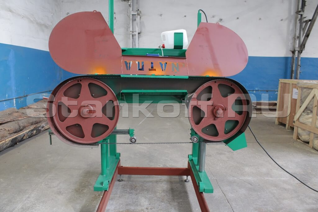 Использование автомобильных вкладышей для перемещение каретки по направляющим портала позволяет значительно повысить устойчивость к вибрации пилорамы при распиловке. Обычно данный узел применяется другими производителями на более тяжелых станках. Если этого будет недостаточно, то рекомендуется приобрести мощную бензиновую ленточную пилораму. Посредством клиноременной передачи двигатель придает вращение пильным шкивам вращающим ленточную пилу.