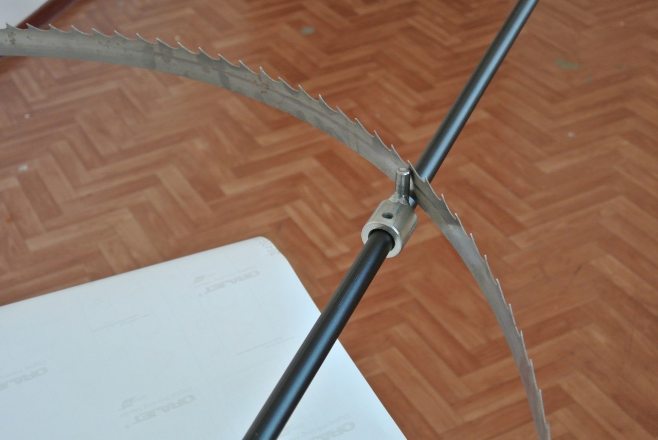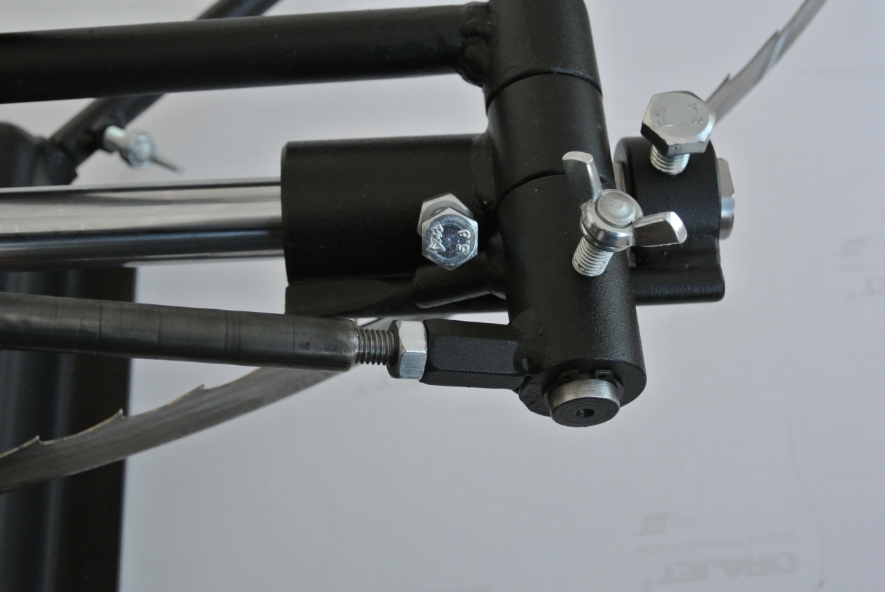 Разводной станок имеет три трубные опоры, которых достаточно, чтобы установить пилу длиной до 5 м и шириной 50 мм.