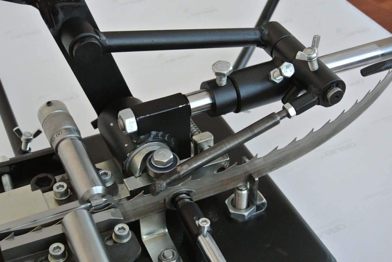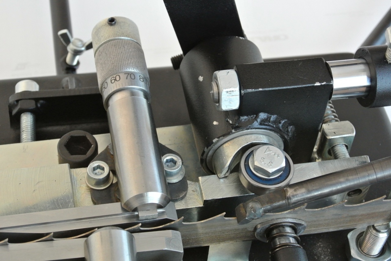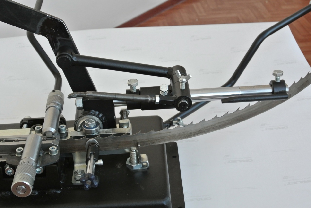 Разводной станок предназначен для очень быстрой разводки зубьев ленточных пил. Разводка зубьев происходит после ручного нажатия рычага на себя. Осуществляя противоположное движение, мы переставляем пилу на очередные зубья.