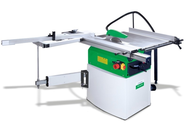 - Высококачественная циркулярная пила по дереву для столярной мастерской с подвижной кареткой, чугунным столом, параллельным и телескопическим поворотным упорами, точной регулировкой пильного диска.