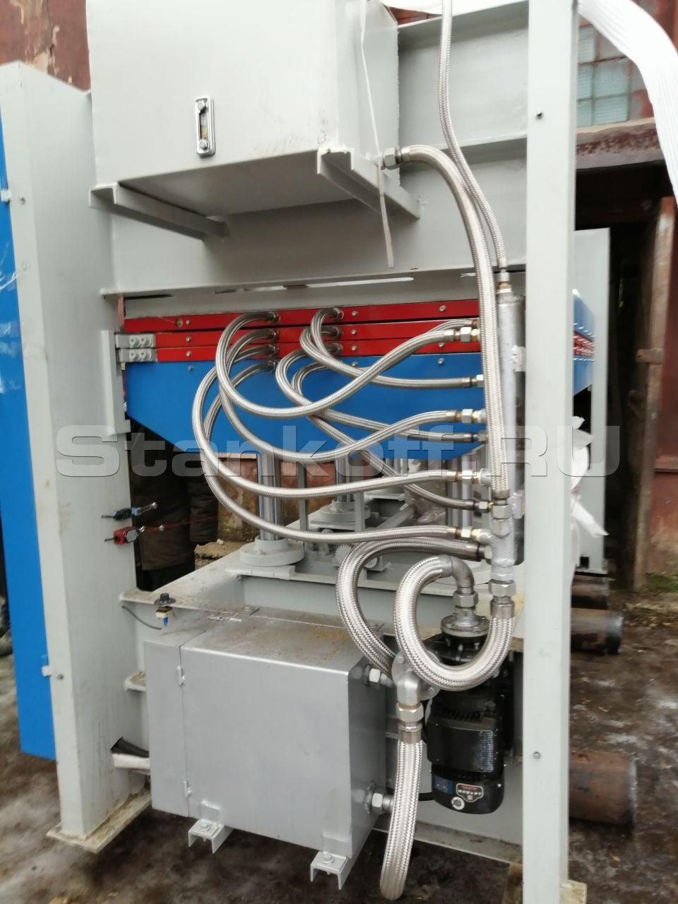 - Плиты пресса с контуром для циркуляции жидкости имеют установленную тепловую изоляцию для удержания температуры внутри плит;