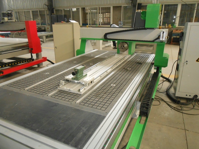 Алюминиевый рабочий стол покрытый износостойким пластиком, специально разработанным для совместного использования с вакуумным насосом. Такой стол позволяет быстро и неподвижно установить заготовку на рабочий стол за счет мощной вакуумной станции 5,5 кВт. Также заготовку на стол можно крепить механически при помощи струбцин, для этого стол разделили на 4 зоны с помощью Т-образного профиля. В отличии от многих этот вакуумный насос роторно-пластинчатого принципа, который работает в разы дольше чем все конкуренты.
