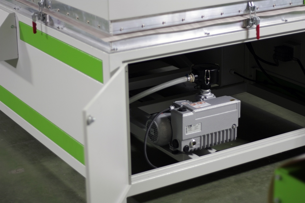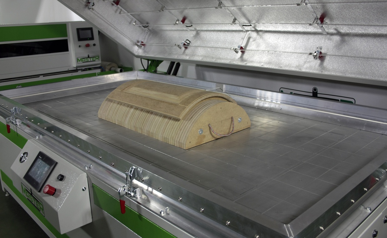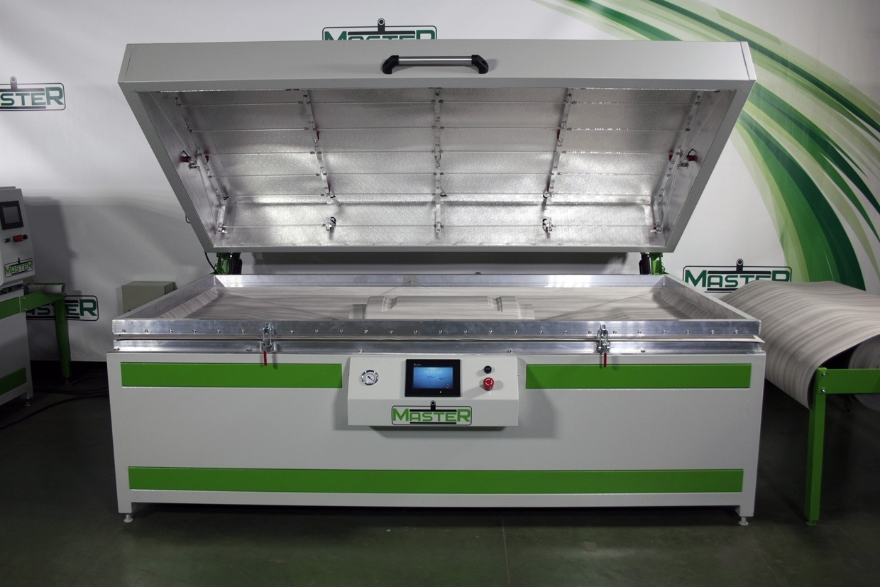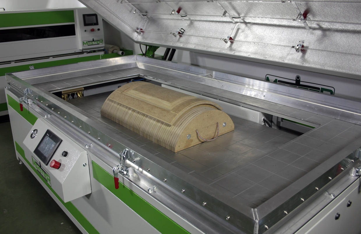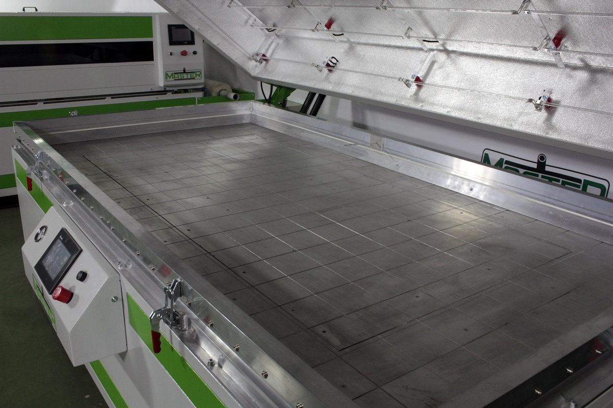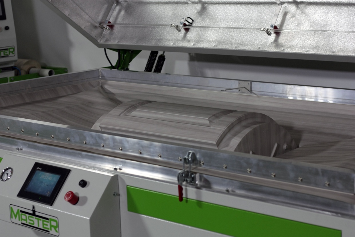 Мембранно - вакуумный пресс Master Compact Plus предназначен для покрытия пленками ПВХ как гнутоклеенных так и прямолинейных фасадов. Мембранно - вакуумный пресс оснащен "драпирующим" столом (вертикально подвижный стол) для обработки гнутоклеенных фасадов, с увеличенной рабочей поверхностью. При поднятии драпирующего стола, возможно использование всей полезной площади стола 2500 х 1250.