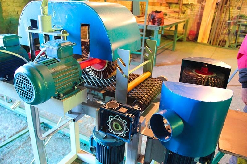 Шлифовальный станок с лепестково-щёточными барабанами Сварог 3-300 трехсторонний с автоподачей