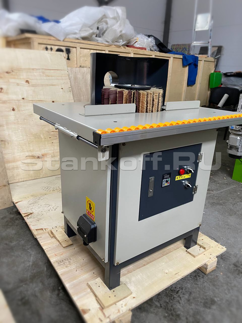 Станок предназначен для шлифования прямых и профильных заготовок из древесины, ДСП, МДФ, ДВП, пластика и пр., с использованием лепестково-щеточного барабана . Широко применяется при шлифовке элементов столов, стульев, кресел, кроватей и других изделий.