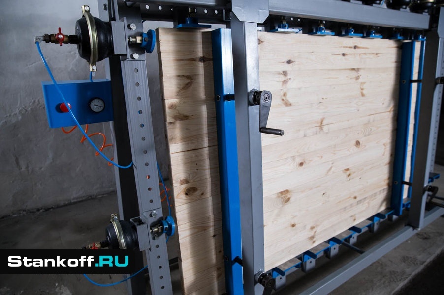 Предназначена для сборки столярных щитов и сборки на клею каркасных изделий длиной до 3000мм и шириной до 1300 мм. (дверных полотен, коробок, мебельных фасадов и т.д.)